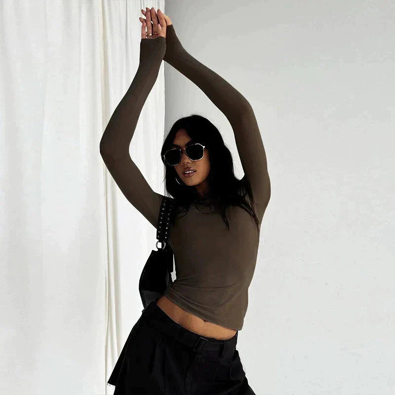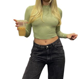 Denne langermete toppen er et absolutt must-have i enhver garderobe. Med sitt myke, pustende stoff og komfortable passform er den perfekt for kjølige dager. Den moderne, forkortede silhuetten gjør den enkel å style med alt fra jeans til skjørt, og er ideell både til hverdags og mer festlige anledninger. Velg blant mange forskjellige farger og skap din egen stil!